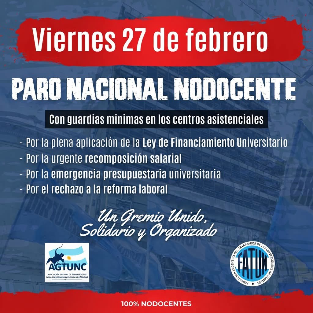[Biblioteca FFyH-PSI] Viernes 27 de febrero 2026 - No habrá atención al público por paro nodocente